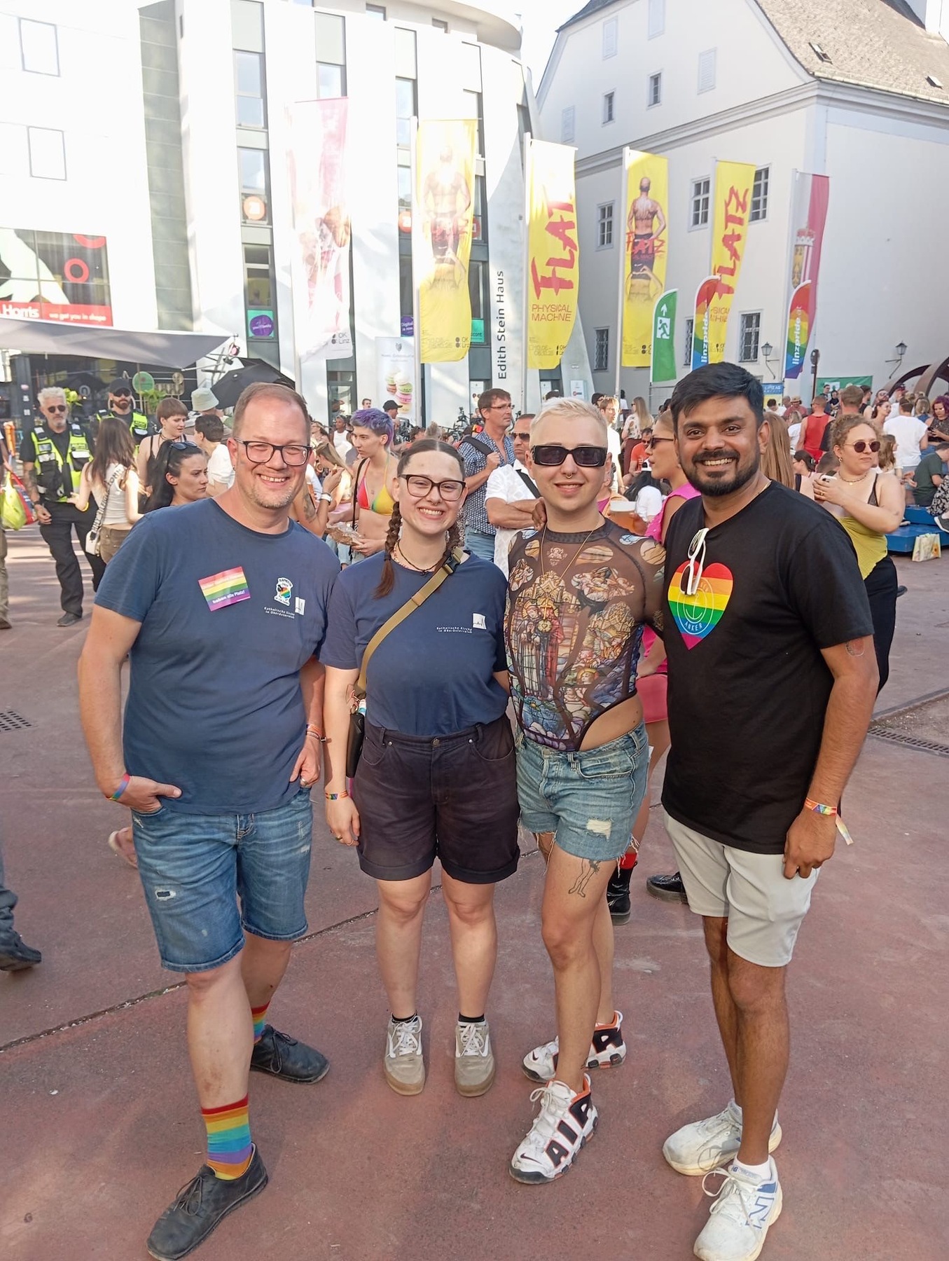 Mag.a Svenja Sasse, Pfarrerin der evangelischen Pfarrgemeinde A.B. Innere Stadt und Mitglied des Vorbereitungsteams, merkt an: „In Solidarität gemeinsam unterwegs zu sein, zuzuhören, gemeinsam die Buntheit des Lebens zu feiern und für Vielfalt und Gerechtigkeit ein- und aufzustehen – das war für mich bei der Pride spürbar.“