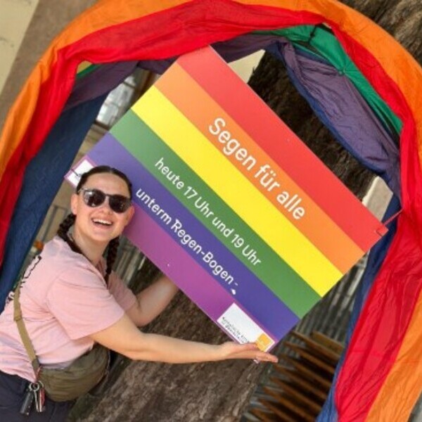 „Besonders berührt mich, dass uns so viele Menschen als Seelsorger*innen für Gespräche, Gebet und Segen aufsuchen. Ich wünschte, für uns einzustehen wäre immer so lautstark, bunt und freudvoll wie an solchen Tagen“, sagt Agnes Schützenhofer von der Regenbogenpastoral der Diözese Linz und Leiterin des Pride-Projekts „Christliche Kirchen unter dem Regenbogen“.