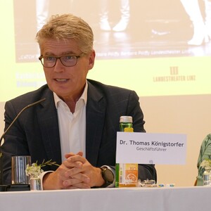 Landestheater-Geschäftsführer Thomas Königstorfer verwies auf die wertvollen Aspekte der Stützpunktleiter:innen-Tätigkeit für das Landestheater und machte auf das aktuelle, vergünstigte "Schnupper"-Angebot für neue Szenario-Abonnent:innen aufmerksam, über das schon viele Neukunden den Weg ins Landestheater gefunden hätten. (Nähere Infos im Szenario-Büro!)