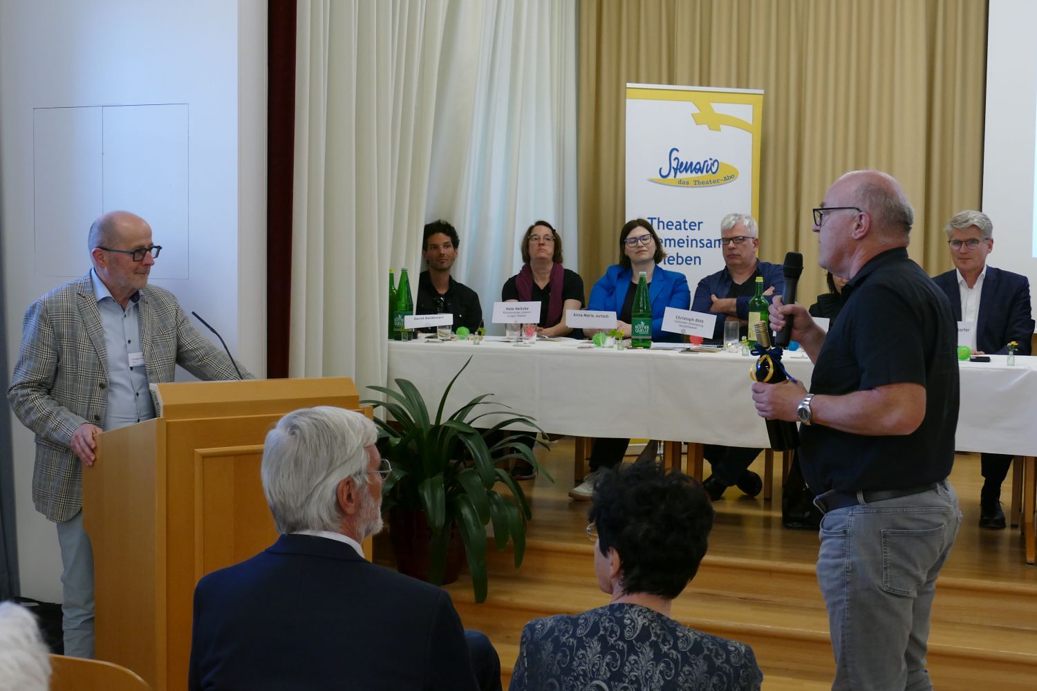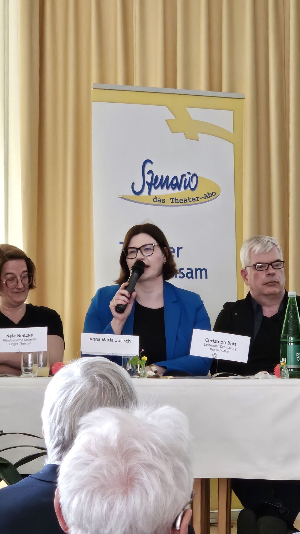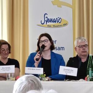 Silke Dörner (künstlerische Leiterin) und Olivia Schütz (kaufmännische Leiterin) vom Theater PHÖNIX betonten, wie wertvoll der direkte Austausch mit dem Publikum sei: „Wir freuen uns sehr, wieder mit einem Stück im Szenario-Abo mit dabei zu sein. Das ist für uns auch ein ganz besonderes Abo, weil wir hier die Chance auf Feedback, auf Dialog haben.“