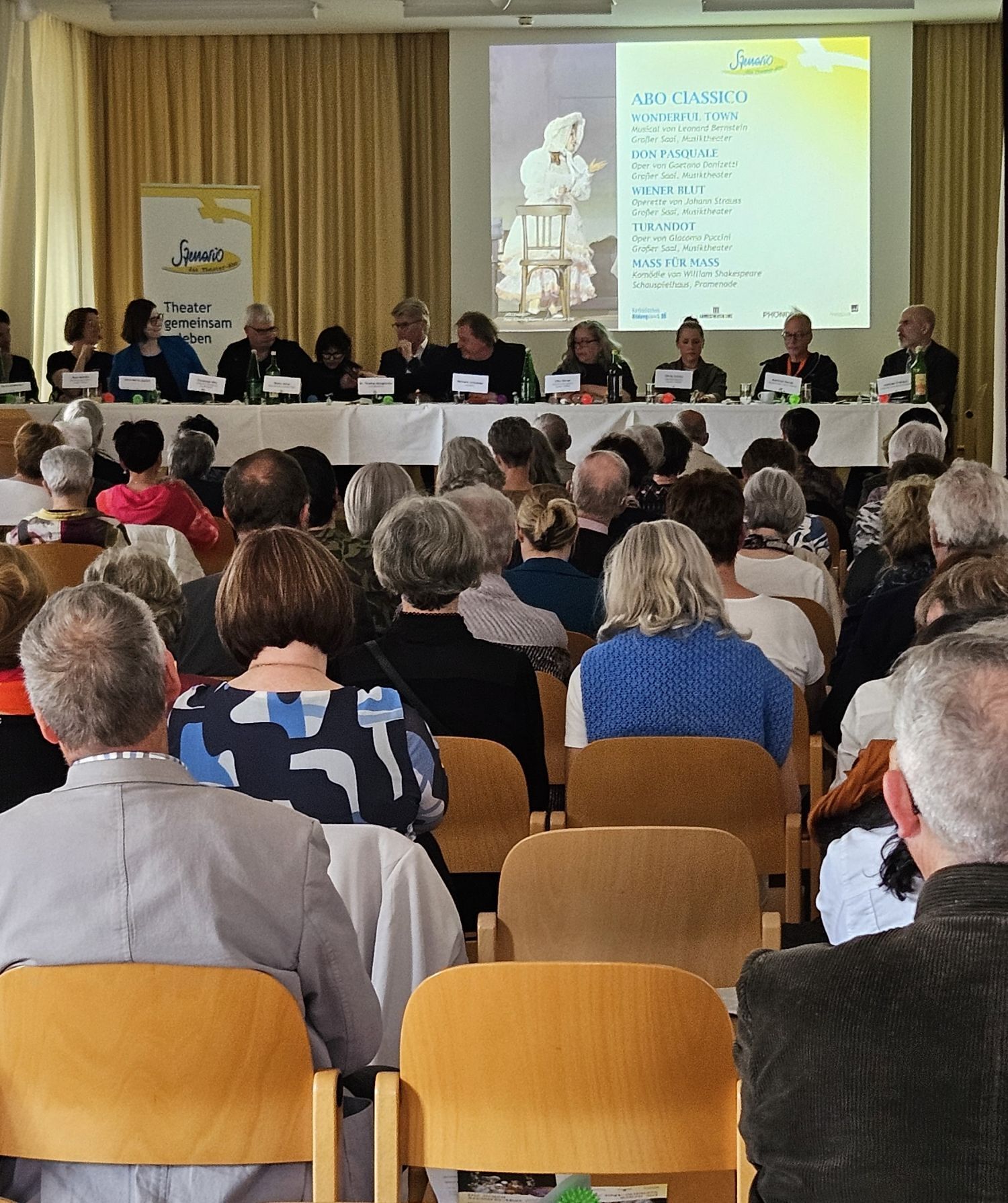 Kurz und knapp präsentierten die Verantwortlichen der Sparten des Theaters den Stützpunktleiter:innen die in den Abos enthaltenen Produktionen. Danke für den tollen Vorausblick an: