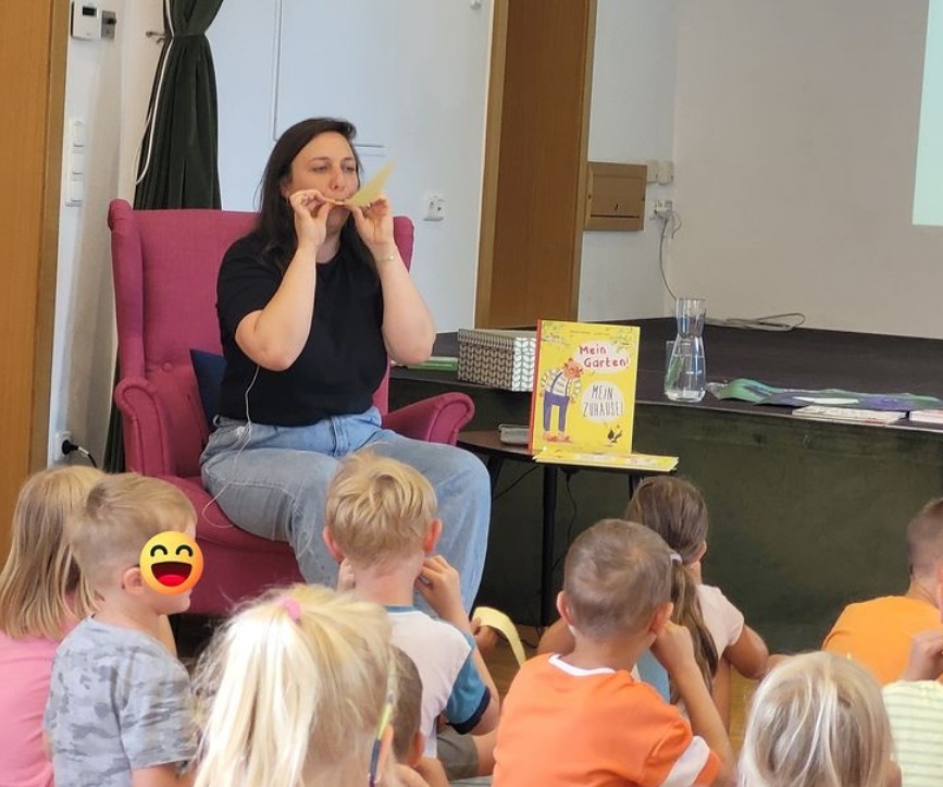 Die knapp 30 Kinder erwartete eine abwechslungsreiche Lesung mit Wissen über Vögel und andere Gartentiere, kleinen Spielen und sogar einem eingängigem Mini-Experiment zur Aerodynamik von Vogelflügeln.