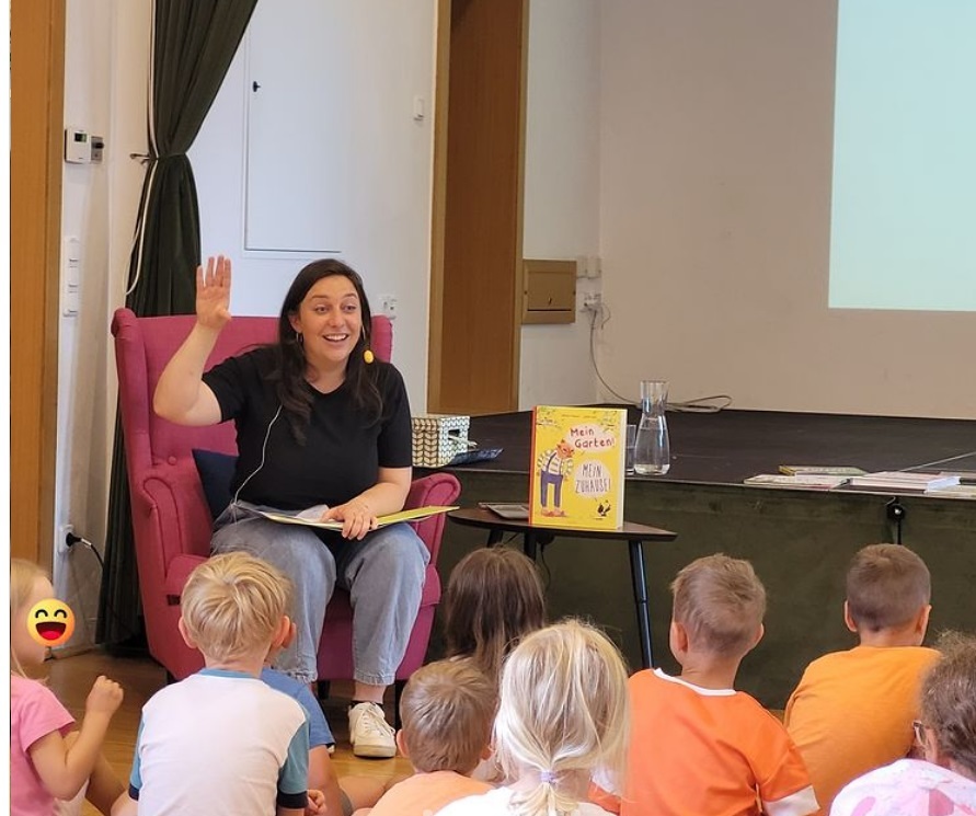 Die zweite Veranstaltung war für jüngere Kinder: eine Mitmachlesung mit der gebürtigen Bad Zellerin Johanna Schmidt zu ihrem Buch "Mein Garten. Mein Zuhause" (Achse Verlag, 2024).