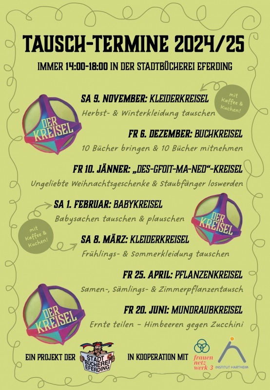 Tauschen, sich austauschen, etwas geben und gleichzeitig zurückzubekommen, das ist die Idee hinter dem neuesten Projekt „der Kreisel“ der Stadtbücherei Eferding.