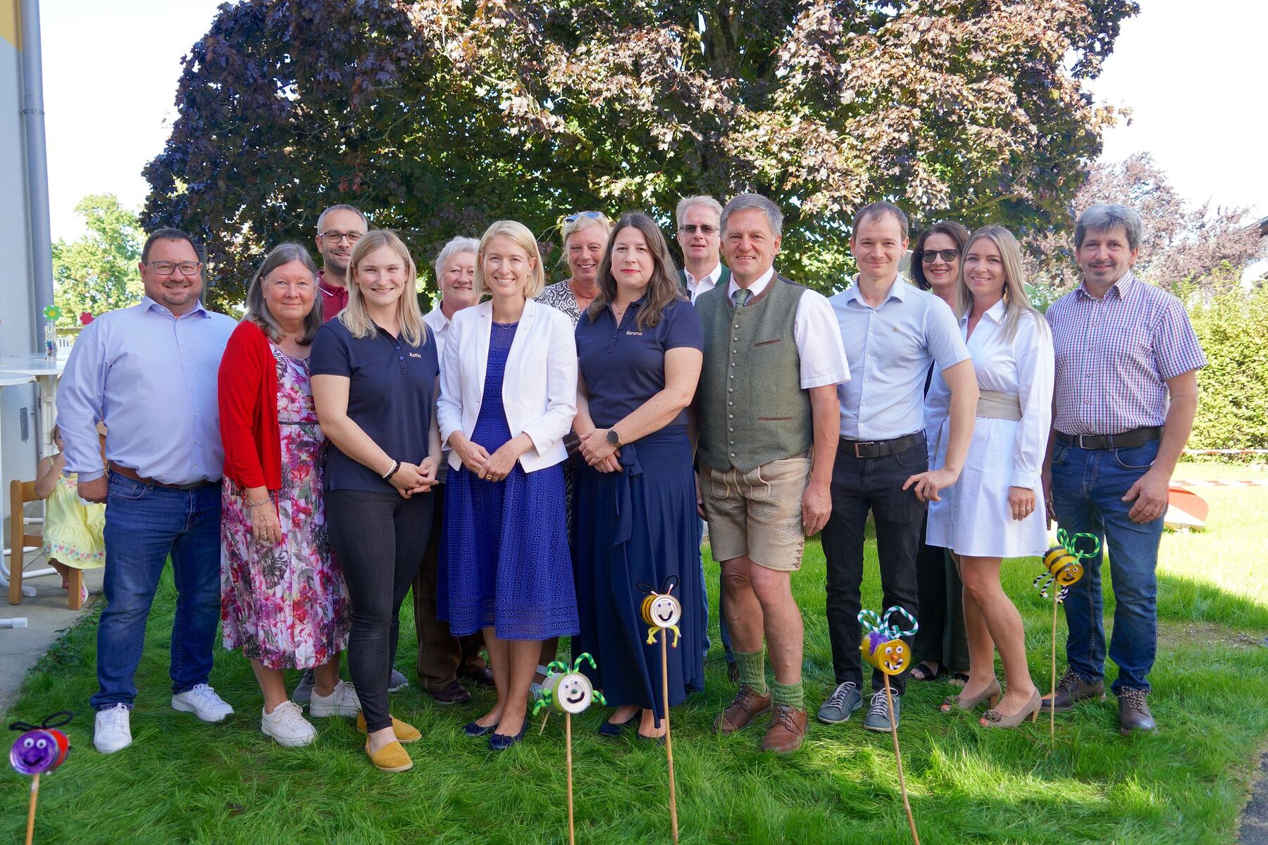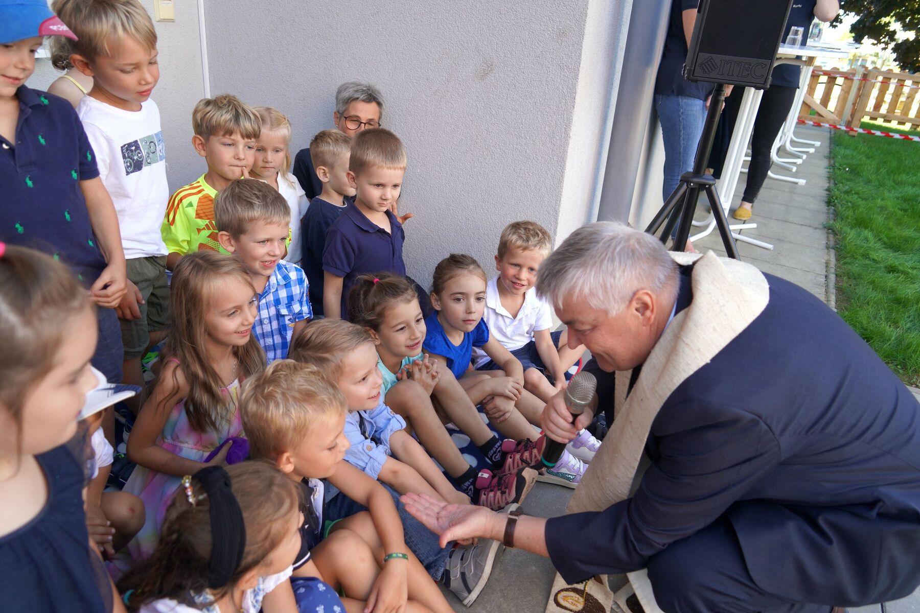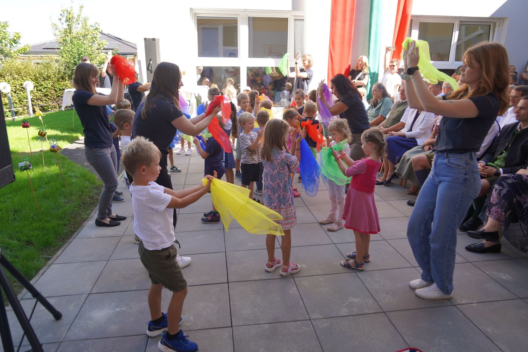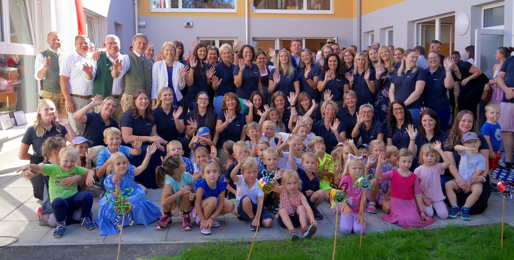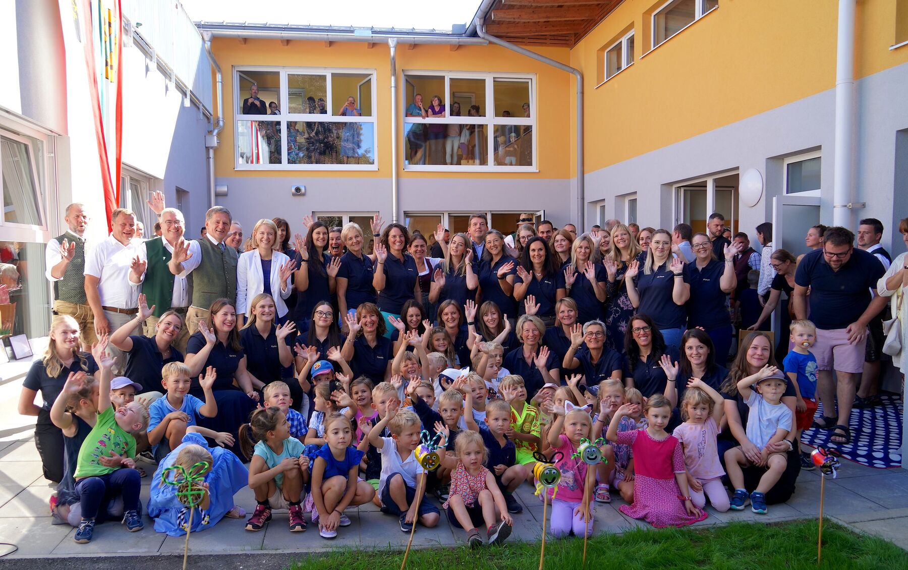 Am Sonntag 21.09.25 fand bei strahlenden Sonnenschein die offizielle Eröffnung des Zubaus der Krabbelstube und des Kindergartens in Gschwandt statt. Nach zehnmonatiger Bauzeit wurden die Exposituren der Krabbelstube und des Kindergartens aufgelöst und in einem gemeinsamen großen Haus zusammengefügt. Geöffnet wurden nun vier Krabbelstubengruppen und sieben Kindergartengruppen. Bei der Eröffnung wurde von den Kindern gesungen und getanzt und die Ehrengäste durch das Haus geführt.