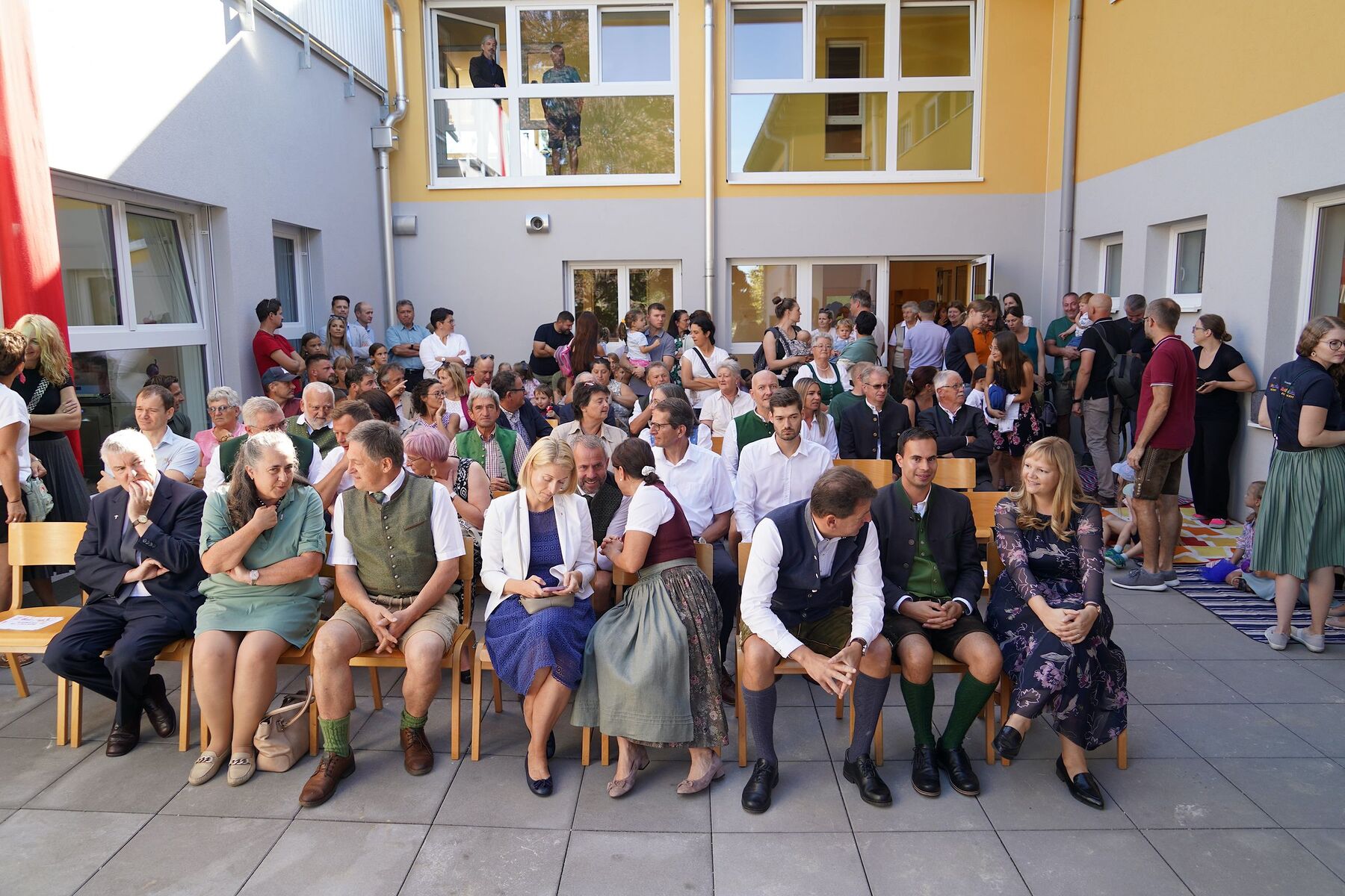 Nach Ansprachen des Bürgermeisters Fritz Steindl, der Landeshauptmannstellvertreterin Magistra Christine Haberlander, der Kindergartenleiterin Kerstin Grabner und des Bauleiters Christian Rechberger vom Bauträger WSG segnete Dechant Mag. Franz Starlinger das neue Haus. Die Krabbelstubenleitung Katharina Sieberer führte professionell durch den Festakt und abgerundet wurde dieser durch den Musikverein Gschwandt.