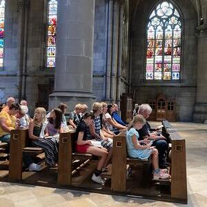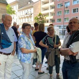 Fast 50 Pfarrgemeindemitglieder von jung bis alt unternahmen diesen Ausflug. Mit dem Bus (Johannes Großalber) ging es direkt zum Dom, wo eine Messe mitgefeiert wurde. Anschließend gab es eine stärkende Pause mit Gesprächen im Schatten des Doms.