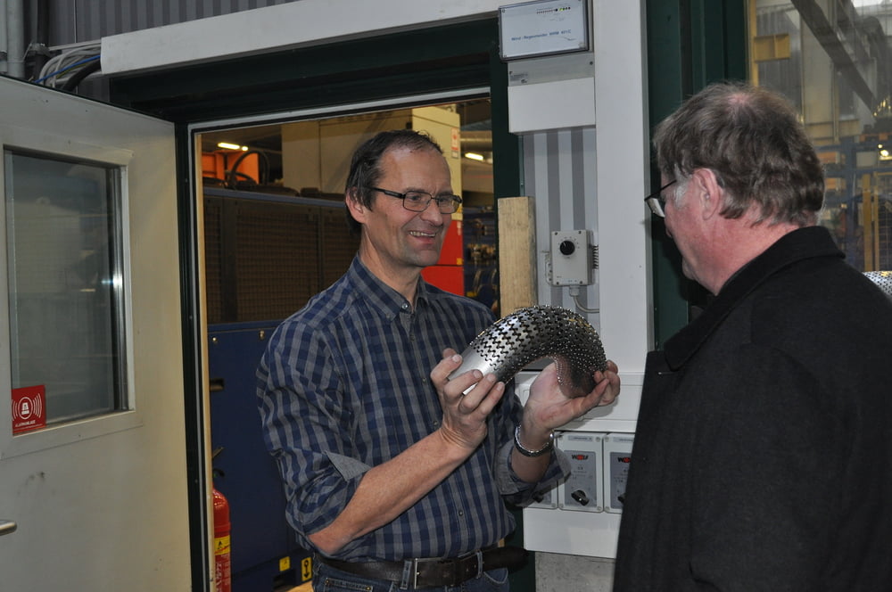 Im Anschluss an die Betriebsbesichtung gab es noch eine kleine Stärkung und Herwig Zöserl überreichte dem Bischof ein wunderschönes Metallkreuz als Erinnerung.